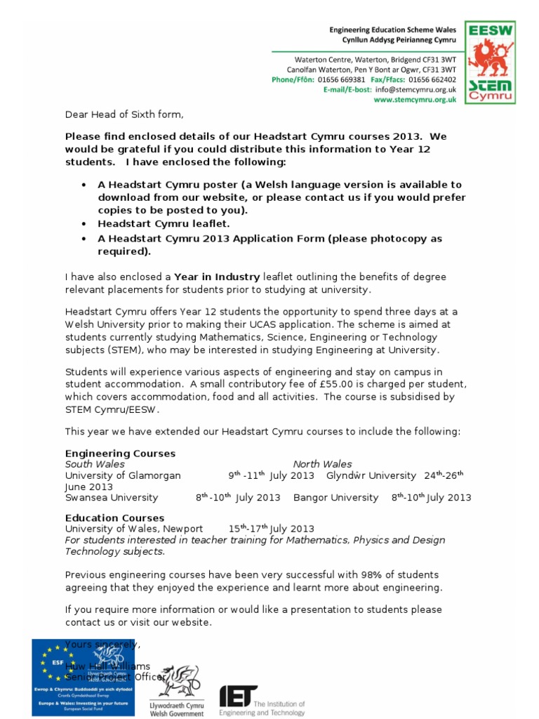 Cover Letter To Head Of Sixth Form | Wales | Educational Institutions